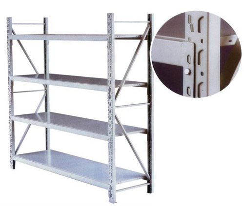 以蝴蝶孔结构锁紧,依靠货物自重进行锁紧,承载重量比中量I(A)型货架大。装拆方便,主、辅架可无限连接,增加货架牢固,节约投入。层板可以以75mm为单位上下任意调节。层面可铺钢层板,亦可铺木板等其它板类。货架由柱片、横梁、层板、安全销和塑料底脚组成。