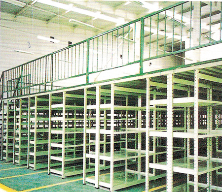 阁楼式货架是用货架做楼面支撑,可设计成多层楼层(通常2-3层)。设置有楼梯、扶栏和升降机等。适用于库房较高,货物轻小,人工存取,储物量大的情况。楼面支撑货架品种规格齐全,阁楼楼面有平板、花纹板、钢格板、木板种类。