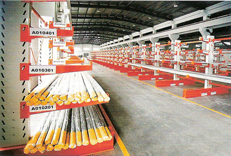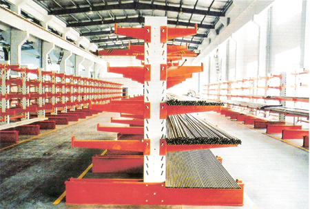适用于长型、板材或环形物料的储存。前伸 的悬臂具有结构稳定,载重能力好,管理方便、视野宽阔。根据载重不同,可分为轻型、中型、重型;根据储存面可分单向悬臂、双向悬臂。